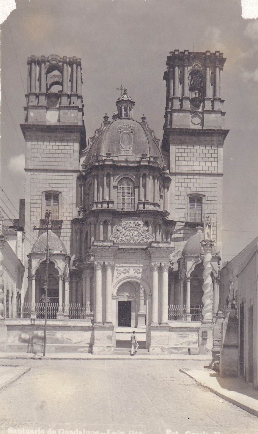 Fachada del Santuario de Guadalupe, ca.1930. La construcción del Santuario comenzó en 1839 y concluyó en el ocaso del siglo XIX, con excepción de las torres, cuya obra terminó hasta los años cincuenta del XX. Autor: García Hermanos.