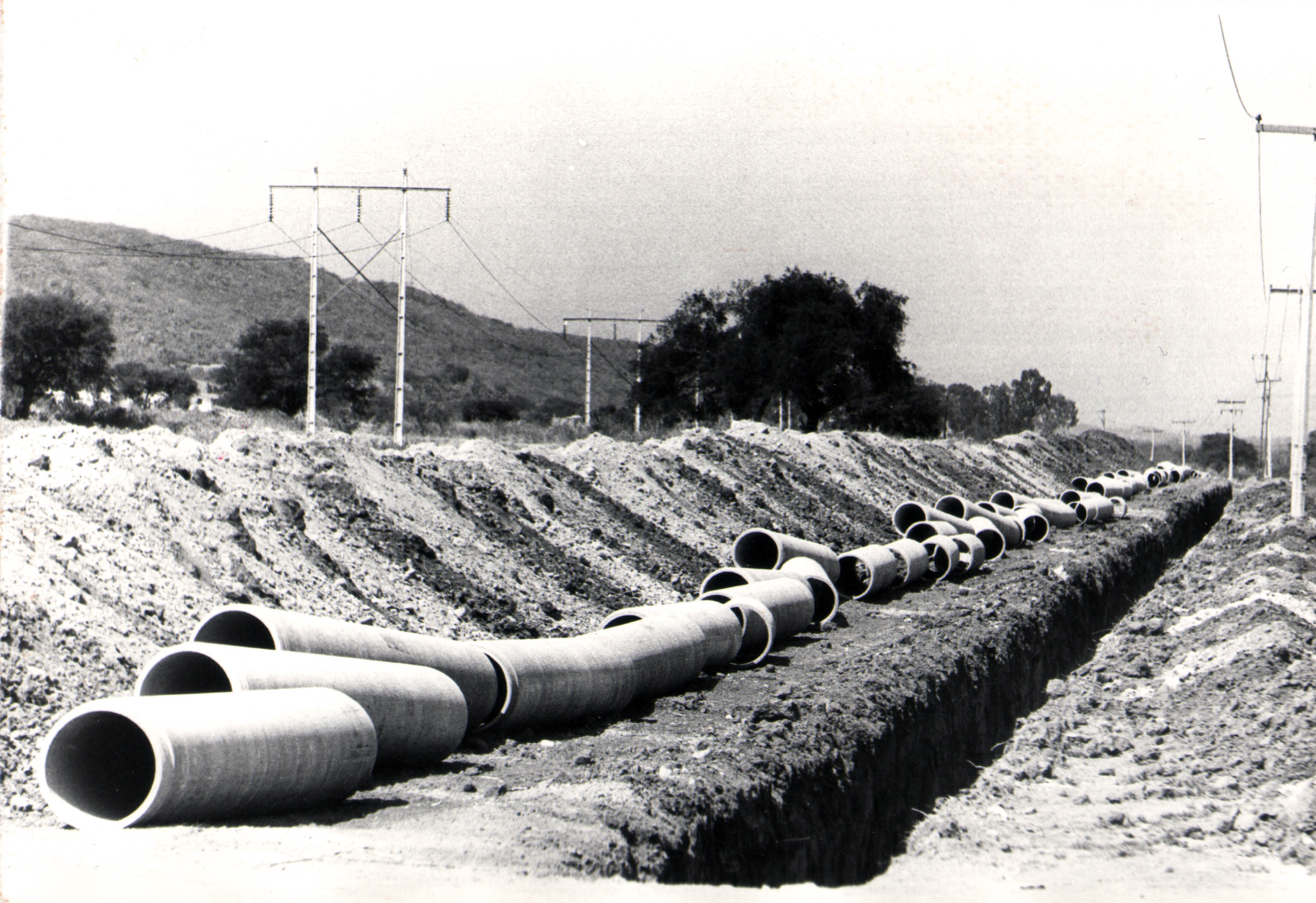 El acueducto que une a León y San Francisco fue construido a finales de los años ochenta y operó completamente a partir de abril de 1990. También se le conoce como “Batería Poniente”. Fotografía en blanco y negro; ca.1987. Autor: Ramón Malacara.